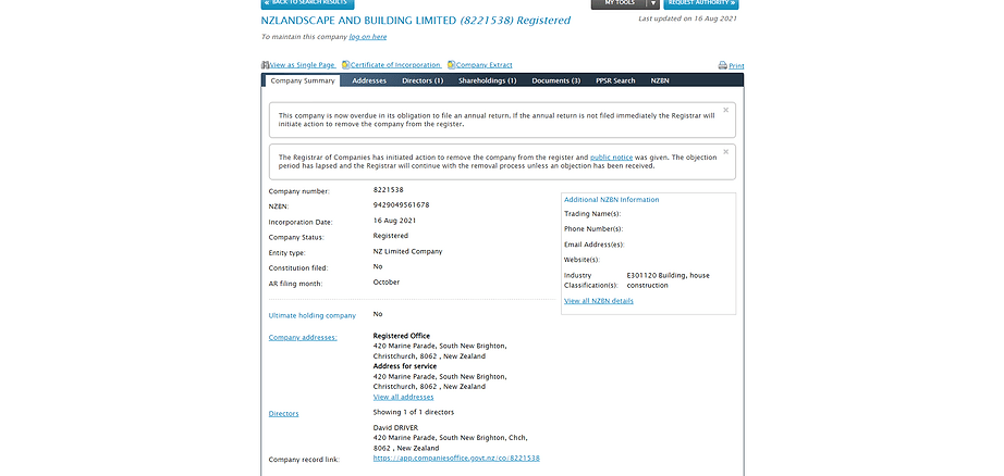 ‘NZLandscape and Building Limited’ at this point was on the companies register and that’s who the debt was with. As time went on, I saw that Dave hadn’t filed the companies register and was in the process of being struck off.